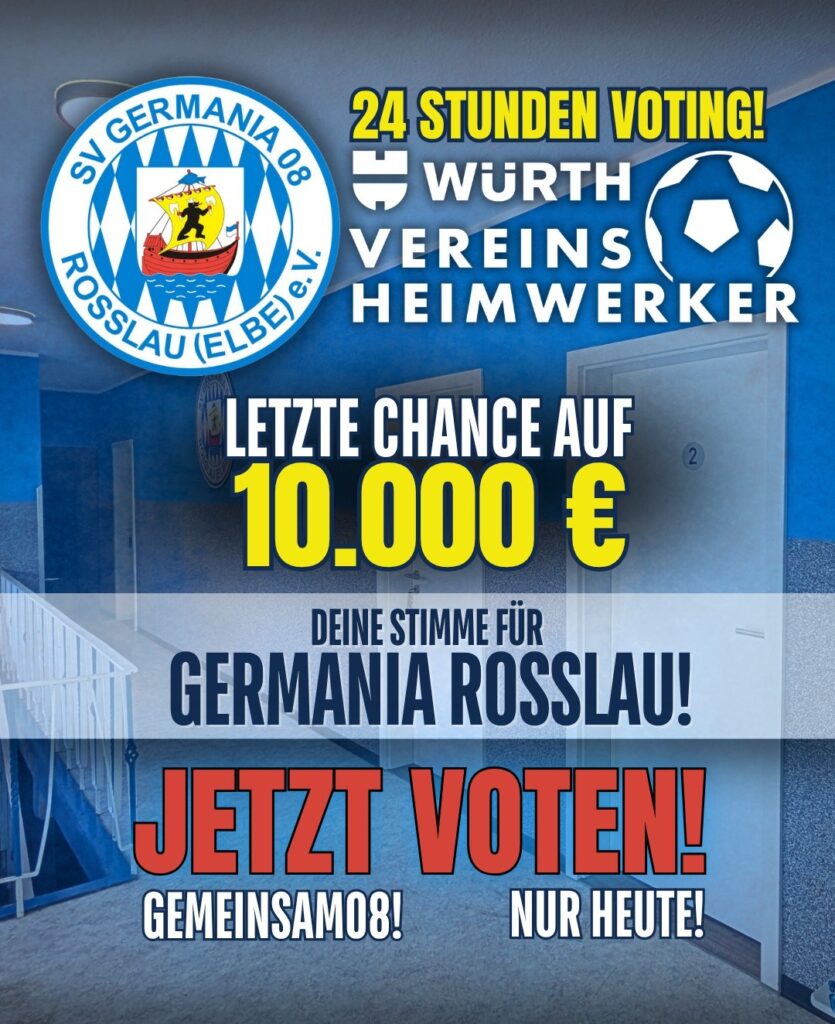 Germania Roßlau hat es geschafft! Nach einem nervenaufreibenden Wettbewerb und einer sensationellen Gemeinschaftsleistung sind wir der Gewinner des Titels „WÜRTH Vereinsheimwerker 2025 – Community-Sieger“! Ein aufregendes halbes Jahr liegt hinter uns. Was mit einer einzigen E-Mail zur Bewerbung unseres Vereinsflur-Umbaus begann, wurde ruckzuck zum Kräftemessen mit rund 1.350 engagierten Vereinen aus der gesamten Republik! Die […]